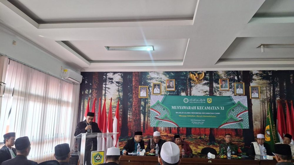MUI-BOGOR.ORG – Majelis Ulama Indonesia (MUI) Kecamatan Ciawi sukses menggelar Musyawarah Kecamatan (MUSCAM) XI pada Sabtu (18/10/2025) di Aula Kantor Kecamatan Ciawi. Hasil musyawarah mufakat melalui tim formatur menyepakati Ustadz Cucu Junaedi, S.Sos.I., sebagai Ketua MUI Kecamatan Ciawi terpilih masa khidmat 2025-2030 menggantikan KH. Badru Kamal Ma’mun, S.Sy.
