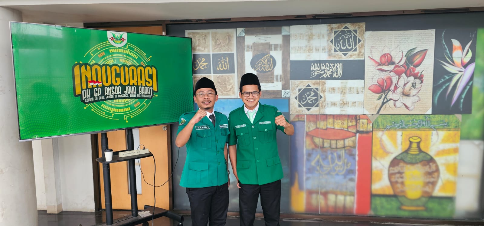 Ketua PC GP Ansor Kabupaten Bogor, Dhamiry A. Ghazaly bersama KH. Abdul Hamid saat inaugurasi PW Ansor Jawa Barat. (Foto: Dhamiry A. Ghazaly)