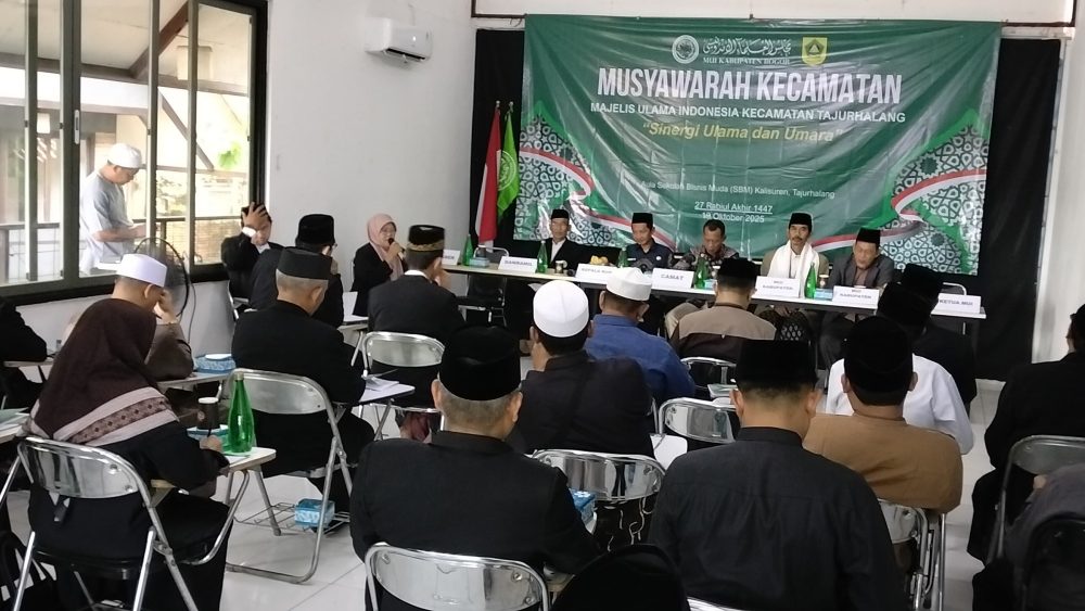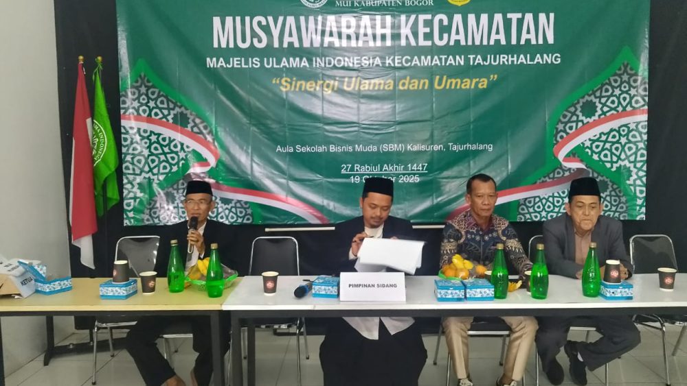 Pernyataan itu disampaikan oleh Ketua MUI Kabupaten Bogor, Dr. KH. Agus Mulyana, MA., mengutip hadis yang diriwayatkan oleh Abu Nu’aim, saat memberikan pembekalan dalam Musyawarah Kecamatan (MUSCAM) VI MUI Kecamatan Tajurhalang, yang dilaksanakan di Aula Sekolah Bisnis Muda, Tajurhalang, Ahad (19/10/2025).