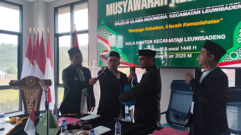Hasil musyawarah menetapkan KH. Dede Mahfudz, M.Ag., sebagai Ketua MUI Kecamatan Leuwisadeng masa bakti 2025–2030.