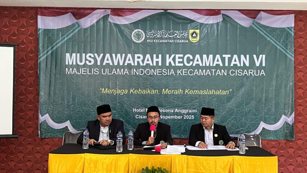 MUI-BOGOR.ORG – KH. Rahmatullah resmi melanjutkan kepemimpinannya di MUI Kecamatan Cisarua untuk masa bhakti 2025-2030 melalui rapat musyawarah tim formatur dalam agenda Musyawarah Kecamatan (MUSCAM) VI di Aula Hotel Anggraini, Cisarua, Senin, 3 November 2025.